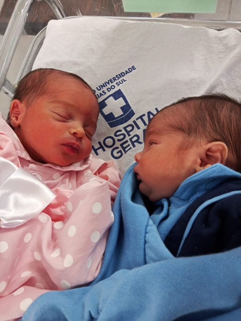 Na foto os gêmeos Heloísa e Joaquim que completaram dez dias nesta segunda-feira, dia 19. Créditos: Divulgação.