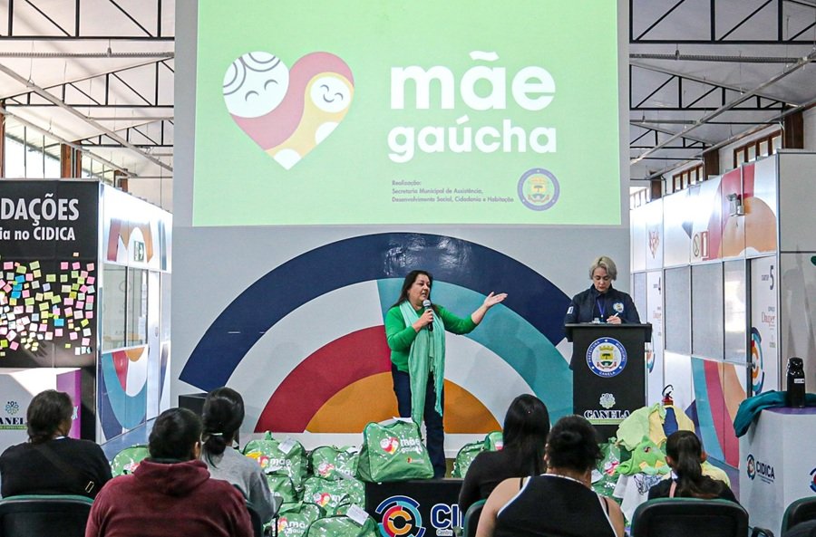 As primeiras gestantes beneficiadas pelo programa Mãe Gaúcha, do governo do Estado, em Canela, receberam os enxovais dos bebês nesta quarta-feira, dia 30, em cerimônia simbólica no Centro Integrado de Desenvolvimento e Inovação (Cidica).