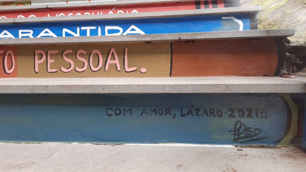 A escadaria, com 40 degraus, foi transformada este mês em uma obra de arte com muita cor, motivações e referências aos livros, além de homenagem a importantes autores gaúchos.