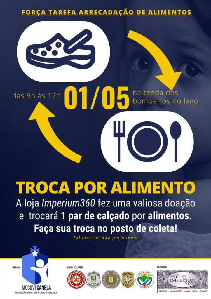A ação ocorre no Parque do Lago, próximo ao mercado JS. Promovem a ação solidária o MOCOVI Canela, CBMRS, Polícia Civil, Brigada Militar, Patran, Susepe e a empresa Imperium 360.