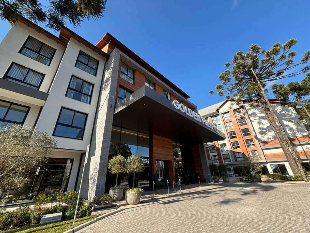 O Golden Tulip Canela está pronto e em fase de soft opening, com projeto assinado pelo escritório de arquitetura de Gramado, Goularte & Pedrassani. O empreendimento é um dos maiores hotéis de Canela em número de quartos e teve sua concepção orientada para a integração entre a construção e a paisagem natural da região.