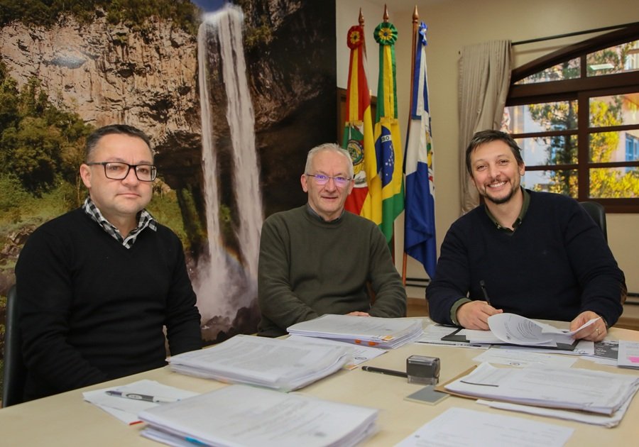 A assinatura da Lei do Refis aconteceu ontem a tarde no gabinete do prefeito, com o secretário Municipal da Fazenda e Desenvolvimento Econômico, José Carlos Doncatto, e o secretário de Governo, Evandro de Jesus Cardoso.