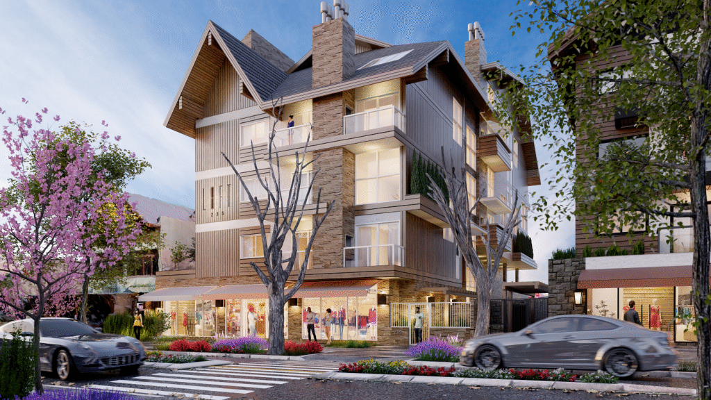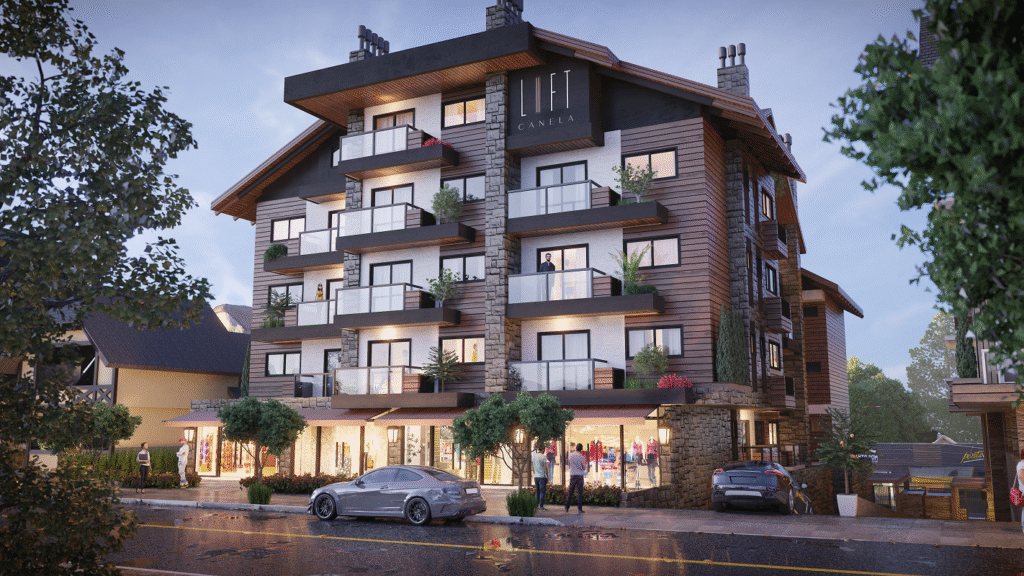 O Loft Canela – Com 4.197,49 m², o Loft Canela terá 12 lofts com pé direito duplo e um dormitório com suíte, 12 apartamentos com um dormitório, 9 apartamentos com dois dormitórios e 9 lojas.
